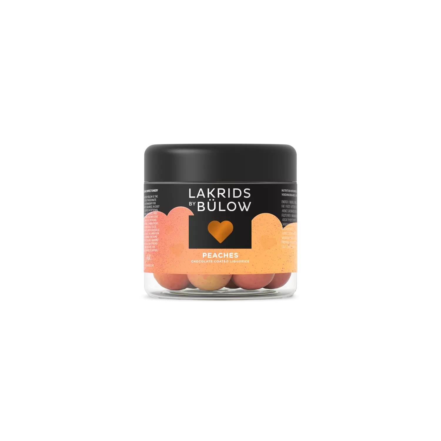 Fersken er også kjent som dronningen blant fruktene, og vi forstår hvorfor. PEACHES forener søte noter fra saftige fersken med en kjerne av søt lakris, det hele dekket av myk hvit sjokolade, med salmiakk og et hint av pasjonsfrukt. Et knasende sukkerskall sørger for sprøhet.